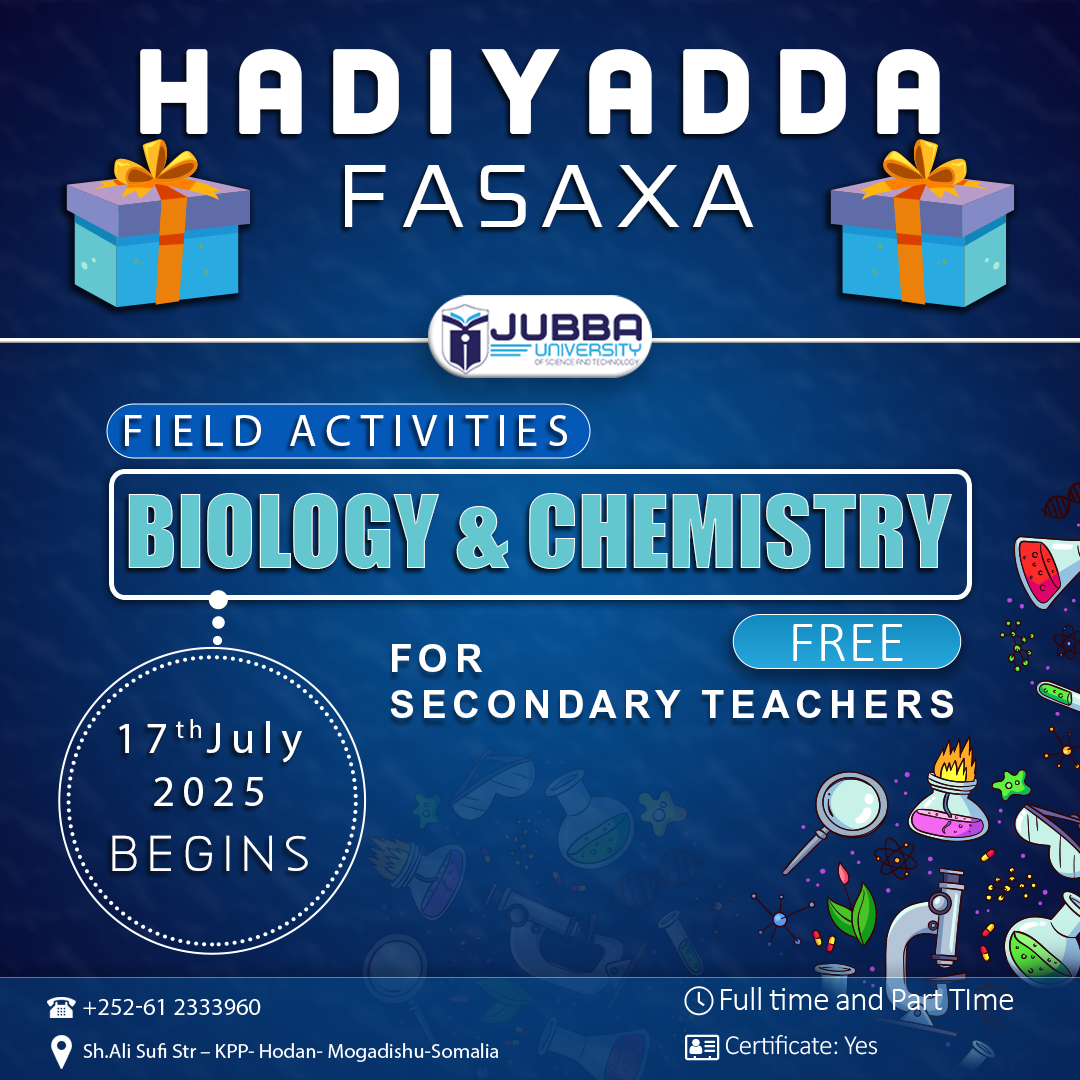 On 15th July 2025, Jubba University of Science and Technology, center of innovation and development notice a one-week workshop of Biochemistry Training Workshop of field activity for secondary school teachers.