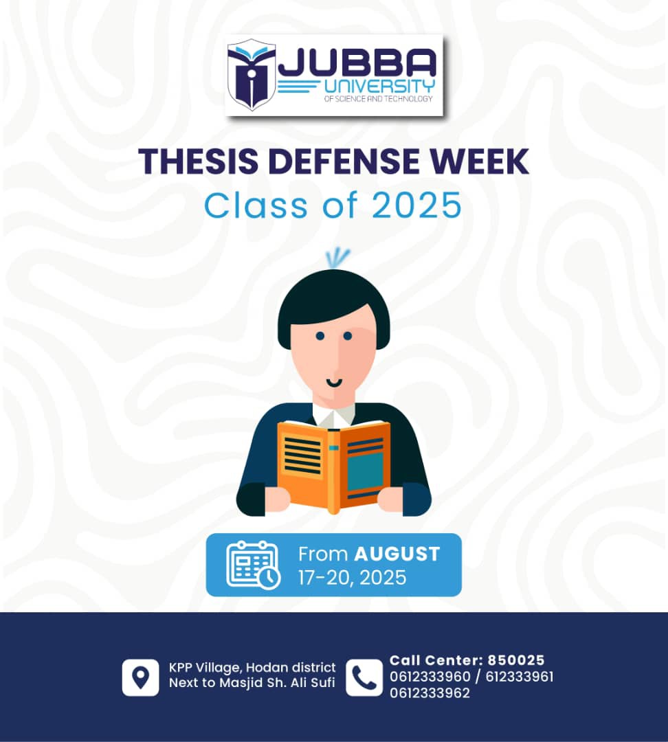 On Wednesday, August 20, 2025, a different class of 2025 graduates will defend their study thesis to complete their long journey of the higher education at Jubba university of science and technology in Mogadishu, Somalia.